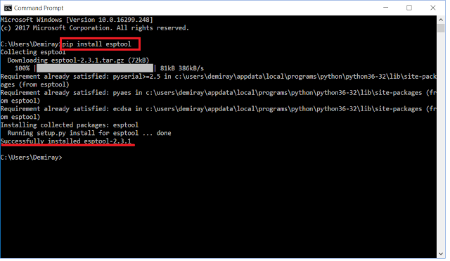 Figure: Installing esptool.py on local PC